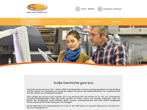 Die Color - Station - GmbH in Vechta ist seit 2006 Ihr Experte rund um Druck und Kopie. Auch wenn Sie ein mehrseitiges Dokument qualitativ hochwertig binden lassen möchten, sind wir die richtigen Ansprechpartner. Wir legen einen hohen Wert auf eine transparente Preisgestaltung, hohe Servicequalität und eine individuelle Beratung.
