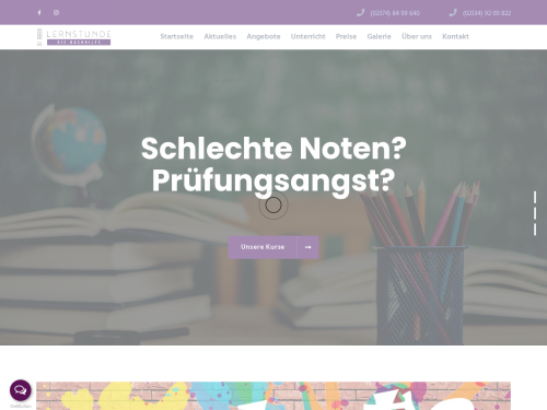 Wir bieten Ihnen mit unserer Lernstunde eine große Bandbreite an Leistungen. Dazu zählen neben der Nachhilfe für Grundschüler auch die Abiturvorbereitung, die Förderung bei Dyslexie und Dyskalkulie sowie Deutschkurse und mehr. Der Unterricht findet auf Wunsch in Kleingruppen oder auch für Einzelpersonen statt. Falls wir Ihr Interesse an unseren Leistungen geweckt haben sollten, dann freuen wir uns sehr auf Ihre Kontaktaufnahme mit unserem Büro in Iserlohn.