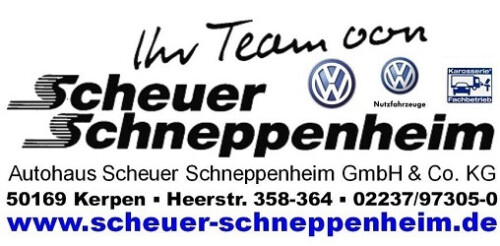 Ihr Team von Scheuer Schneppenheim seit 85 Jahren. Wir sind ein mittelständisches Familienunternehmen in 3. Generation seit 1933. Wir sind Volkwagen PKW + Nutzfahrzeuge Vertragshändler und Vertrags-Werkstatt. Wir sind E-Mobilitätspartner von VW, dass heißt bei uns können alle Elektro- sowie Hybridfahrzeuge von VW erworben werden. Unsere Stärke ist ein freundliches und qualifiziertes Team von 30 Mitarbeitern, das bei jedem Problem rund um Ihr Fahrzeug für Sie da ist.