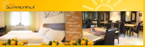 In dem Hotel Sonnenhof unter der Leitung von Reinhard Koch warten auf Sie 14 rundum erneuerte Nichtraucherzimmer. Hierbei handelt es sich um Einzel-, Doppel- und Dreibettzimmer. Sie können zwischen Zimmern mit französischem Bett oder klassischem Doppelbett wählen. Alle Zimmer verfügen über Dusche, Toilette, Satellitenfernsehen und WLAN. Teilweise haben sie auch einen Balkon. Im Foyer bieten wir den Rauchern unter Ihnen einen Raucherbalkon an. Morgens steht für Sie ein üppiges Frühstücksbuffet bereit. Wer einen längeren Aufenthalt bei uns plant, kann statt eines Hotelzimmers auch ein ganzes Apartment anmieten.