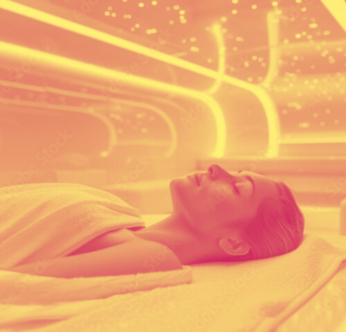 In ruhiger Atmosphäre liegen Sie bei Entspannungsmusik auf bequemen Liegen.