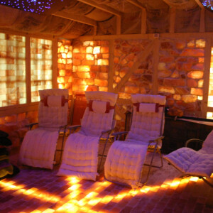 Den gleichen Effekt erzielt man in unserem Natursalzstollen, einem aus reinem Salz vom Fuße des Himalayas und Holz erstellten Raum, in dem Sie mineralstoffreiche und besonders reine Luft atmen und eine wohltuende Auszeit für Körper, Geist und Seele genießen können.