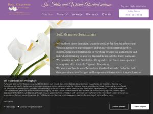 Sie sind auf der Suche nach einem Fachmann für Beisetzungen, der sich durch einen ganzheitlichen Ansatz in seinem Beruf auszeichnet? Willkommen beim Bestattungsinstitut B. Graupner, Ihrem Partner für eine würdevolle Bestattung Ihrer Liebsten. Wir sind als Bestatter auf sämtlichen Friedhöfen in Nürnberg tätig und legen Wert auf eine entspannte Atmosphäre während der Beratung. Unsere Mitarbeiter zeichnen sich durch eine fundierte Ausbildung und ein hohes Maß an Flexibilität aus. Unser Familienunternehmen steht Ihnen seit dem Jahr 2013 in allen relevanten Fragen zur Seite.