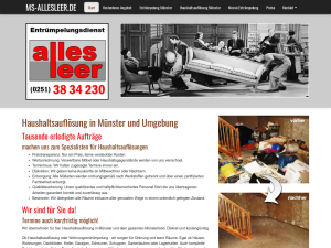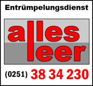 Wir von Alles Leer aus Münster sind Ihr kompetenter Ansprechpartner für Haushaltsauflösungen, Entrümpelungen und Räumungen. Unsere qualifizierten und erfahrenen Mitarbeiter kümmern sich zuverlässig um Ihr Vorhaben. Dabei ist uns keine Herausforderung zu hoch: Wir sorgen auch für die besenreine Auflösung von Messie-Wohnungen. Wir arbeiten für private Kunden aber auch für Kunden aus dem gewerblichen Bereich. Sprechen Sie uns gerne an, wir freuen uns auf Sie und Ihr Vorhaben.