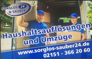 Sie stehen vor dem Problem einer Haushaltsauflösung? Vielleicht ist ein naher Verwandter gestorben oder zieht in ein Pflegeheim? Oder Sie ziehen selbst um und brauchen dazu tatkräftige Unterstützer, die Ihre Möbel mit großer Sorgfalt behandeln? In Krefeld und Umgebung stehen die Mitarbeiter des Umzugsunternehmens Sorglos&Sauber24 für Sie bereit. Nach einer ersten Beratung erhalten Sie einen Kostenvoranschlag mit Festpreis und müssen keine Angst vor versteckten Kosten haben.