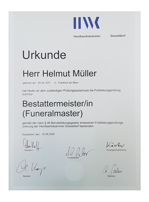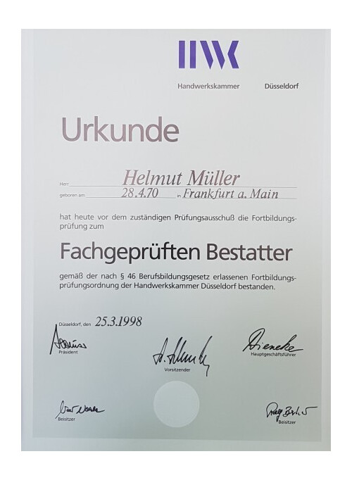 Sie suchen einen regionalen Bestatter mit langjähriger Berufserfahrung in seinem Bereich? Dann sind wir Ihr richtiger Ansprechpartner. Das Bestattungsinstitut von Helmut Müller in Dreieich erledigt schnell und unkompliziert alle Formalitäten, damit Sie Zeit zum Abschiednehmen und Trauern haben. Sprechen Sie uns gern an.