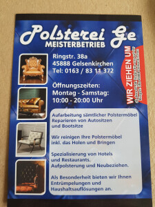 Sie möchten Ihre Sitzgelegenheiten neu polstern lassen und suchen den richtigen Spezialisten? Dann wenden Sie sich doch an unsere Polsterei und Sattlerei in Gelsenkirchen! Wir sind Ihr kompetenter Partner für alle Arbeiten rund um Möbelpolsterung und Reparaturen. Als Meisterbetrieb sind wir der Qualität verpflichtet. Unsere Mitarbeiter führen jeden Kundenauftrag mit Fachwissen und Erfahrung durch, mit dem Ziel zufriedener Kunden, sei es in Gelsenkirchen oder Umgebung.