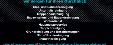 Mit unseren Glasreinigungen sorgen wir für einen klaren Ausblick. Zugleich sorgen wir durch unsere Fassaden- und Fensterreinigungen dafür, dass Ihre Immobilie auch von außen einen perfekten Eindruck macht. Aufgrund modernster Technik sind wir in der Lage, auch Arbeiten in großen Höhen perfekt umzusetzen. Für Unternehmen kümmern wir uns um Büroreinigungen, wodurch wir zu idealen Arbeitsbedingungen beitragen. Wir putzen die Böden, Schreibtische, Schränke und Regale für Sie. Auch das Leeren der Mülleimer zählt zu unseren Aufgaben. Industriereinigungen befinden sich bei uns ebenfalls in kompetenten Händen.