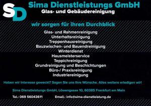 Suchen Sie einen zuverlässigen Dienstleister, der Ihr Büro putzt oder sich regelmäßig um Fensterreinigungen kümmert? In solchen Fällen ist unser Team von Sima Dienstleistungen gerne für Sie im Einsatz. Ansässig sind wir mit unserem Reinigungsunternehmen in Frankfurt am Main, doch darüber hinaus werden wir auch im umliegenden Rhein-Main-Gebiet tätig. Ein zuverlässiger Service bedeutet für uns gleichermaßen Pünktlichkeit und sorgfältige Arbeiten von hoher Qualität. Beauftragen Sie uns, und wir erledigen alles zum fairen Preis, sodass Sie sich auf andere Dinge konzentrieren können.