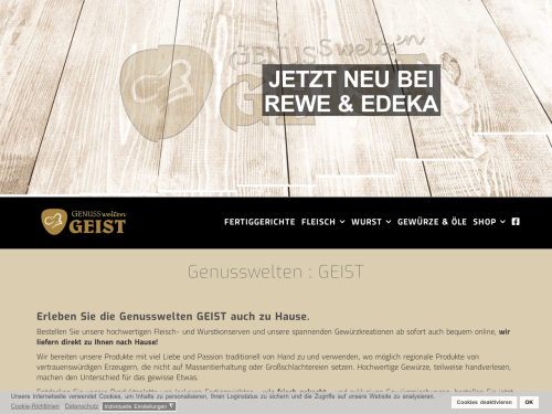 Sie lieben Wurstspezialitäten und Feinkost? Dann besuchen Sie doch unseren Online-Shop der GENUSSwelten GEIST in Bretten! Unsere Lebensmittelmanufaktur ist der ideale Partner für Ihre kulinarischen Vorlieben. Als Metzgermeister Peter Geist stehe ich mit meinem Namen für das Qualitätsversprechen, ausschließlich regionale Produkte von Erzeugern meines Vertrauens zu verwenden. Wir, Vater und Sohn, sind zertifizierte Lebensmittelhersteller und betreiben unseren Online-Shop mit viel Leidenschaft und Liebe zum Genuss. Lassen Sie sich von unseren handgemachten Spezialitäten verzaubern!