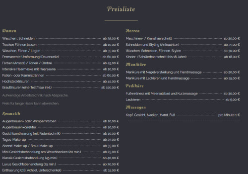 Wir bieten Ihnen ein breites Produkt- und Leistungsportfolio, sodass Sie sich rundum wohlfühlen. Sie können aus verschiedenen Haarschnitten wählen. Hierzu zählen beispielsweise Hairstyling mit Konzept, topaktuelle Frisuren, Haarschnitte nach Modellen oder auch verschiedene Strähnentechniken. Darüber hinaus färben wir Ihre Haare mit verschiedenen Techniken und tragen auf Wunsch hochwertiges Tages- oder Event-Make-up auf. Für besondere Anlasse erstellen wir für Sie auch edle Hochzeitsfrisuren, Hochsteckfrisuren oder Brautfrisuren. Unsere vielfältigen Leistungen im Bereich der Maniküre und Pediküre runden unser vielfältiges Angebot ab.