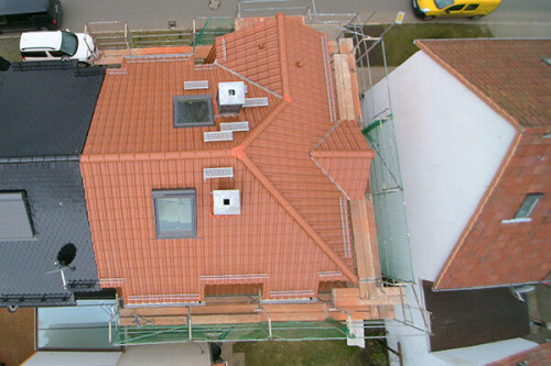 Dacheindeckung mit Betondachsteinen, Tonziegeln und Naturschiefer