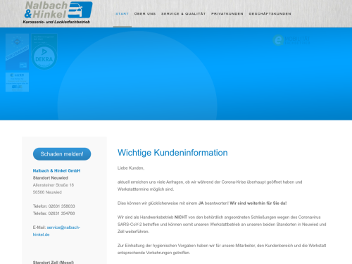 Wir von der Nalbach & Hinkel GmbH in Neuwied sind Ihr kompetenter Lackier- und Karosseriefachbetrieb. In unserer modern ausgestatteten Autowerkstatt arbeiten wir nur mit leistungsfähigen Geräten, sodass eine präzise und effiziente Arbeit gewährleistet ist. Alle unsere Autolackierer sind hervorragend und umfassend ausgebildet. Sie können daher immer auf eine erstklassige Arbeit vertrauen. Wir sind ein Familienbetrieb, der schon seit 1903 existiert und mittlerweile in der fünften Generation von Jörg Hinkel geführt wird.