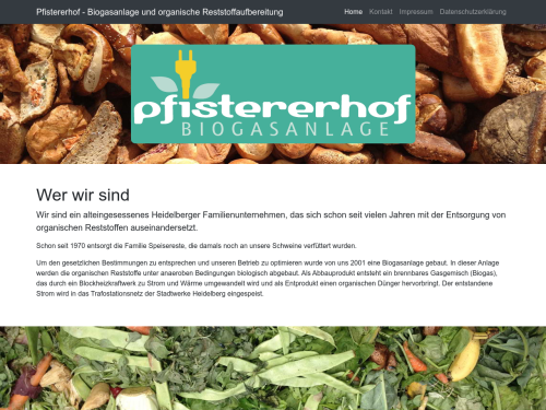 Um den gesetzlichen Bestimmungen zu entsprechen und unseren Betrieb zu optimieren wurde von uns 2001 eine Biogasanlage gebaut. In dieser Anlage werden die organischen Reststoffe unter anaeroben Bedingungen biologisch abgebaut. Als Abbauprodukt entsteht ein brennbares Gasgemisch (Biogas), das durch ein Blockheizkraftwerk zu Strom und Wärme umgewandelt wird und als Endprodukt einen organischen Dünger hervorbringt. Der entstandene Strom wird in das Trafostationsnetz der Stadtwerke Heidelberg eingespeist.