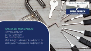 Das Team von Schlüssel Mühlenbeck in Paderborn ist für Sie da, wenn es um Schließ- und Sicherheitstechnik geht. Wir verfügen über großes Know-how und jahrelange Berufserfahrung. Besonderen Wert legen wir auf einen sehr guten Service für unsere Kundinnen und Kunden sowie volle Kostentransparenz. Bei uns profitieren Sie stets von einem fairen Preis-Leistungs-Verhältnis – auch dann, wenn Sie einmal unseren Notdienst in Anspruch nehmen müssen.
