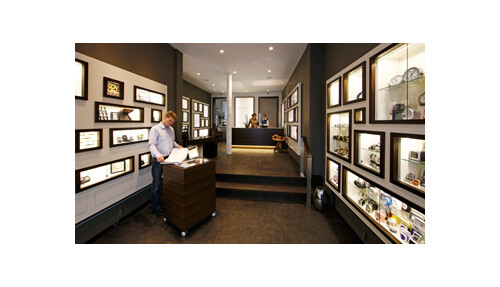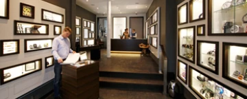 Sie finden Uhren und Schmuck für alle Gelegenheiten und können – nur durch eine Glasscheibe getrennt – dem Uhrmacher und Goldschmiedemeister bei der Ausübung ihres Handwerks zuschauen.