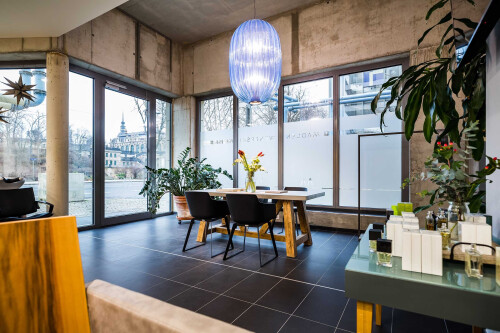 Intercoiffure Madlen Wenerski ist ein eleganter Friseur in Dresden mit ausgesuchtem Interieur und stilbewusster Kundschaft. Der Salon mit seinen zwei Ebenen liegt in unmittelbarer Nähe zur Altstadt der sächsischen Landeshaupstadt – unweit von Elbe, Semperoper und Zwinger. Der Style des Studios ist elegant-kreativ und wurde von Reisen in die Metropolen Berlin, Barcelona und London inspiriert. Zeitlose Sassoon-Haarschnitte sowie trendorientierte Colorationen sind die Stärken von Madlen Wenerski und ihren 16 Mitarbeitern.