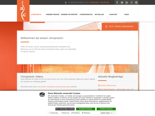 Unsere Praxis Ahearn Chiropractic ist Ihre Adresse für die Chiropraktik in Düsseldorf. Wir sind eine speziell auf das Fachgebiet American Chiropractic spezialisierte, sehr gut angesehene, Praxis. Bereits seit dem Jahr 2004 bieten wir verschiedene Behandlungen an. Besuchen Sie uns in unserem Loft und tauchen Sie in das freundlich-helle Ambiente unserer Praxis ein! Unser hochqualifiziertes Team gibt sein Bestes, damit Sie sich vom ersten Augenblick an wohlfühlen. Ihnen zu einem deutlich gesteigerten Wohlbefinden zu verhelfen, ist die Quintessenz unserer Arbeit.
