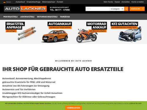 Wir von der Firma Lackner in Oberursel haben uns auf den Kfz-Ankauf und die Autoverwertung spezialisiert. Als Sachverständige für die Kraftfahrzeugtechnik sind unsere Mitarbeiter in der Lage, den aktuellen Marktwert von Motorfahrzeugen zu ermitteln und Kfz-Schäden fachgerecht zu beurteilen. Wir verfügen über eine mit moderner Technik ausgestattete Autowerkstatt und über einen eigenen Abschleppdienst. Beim Ankauf Ihres Autos oder Motorrads übernehmen wir zugleich auch sämtliche Formalitäten wie etwa die Abmeldung von der Versicherung. Sie haben Interesse am Service unserer Firma? Dann steht Ihnen einer unserer freundlichen Mitarbeiter gerne zur Verfügung. Rufen Sie dazu einfach unsere Kunden-Hotline an!