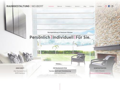 Unser Unternehmen Raumgestaltung Neubert steht Ihnen seit dem Jahr 1949 als Innenausstatter für die stilvolle Dekoration von Zimmern in Hannover zur Verfügung. Seit 2014 führt Sina Riese, geborene Neubert, unseren Familienbetrieb in dritter Generation. Wir legen Wert auf unseren direkten Kontakt zu unseren Auftraggebern und auf individuelle Lösungen für unsere Kunden. Ganz gleich, ob Sie Gardinen oder Teppichböden benötigen, bei uns finden Sie alle Artikel in ansprechender Auswahl. Darüber hinaus erledigen wir die fachgerechte Reinigung Ihrer Vorhänge und übernehmen Polsterarbeiten, mit denen Ihre alten Möbel in neuem Glanz erstrahlen.